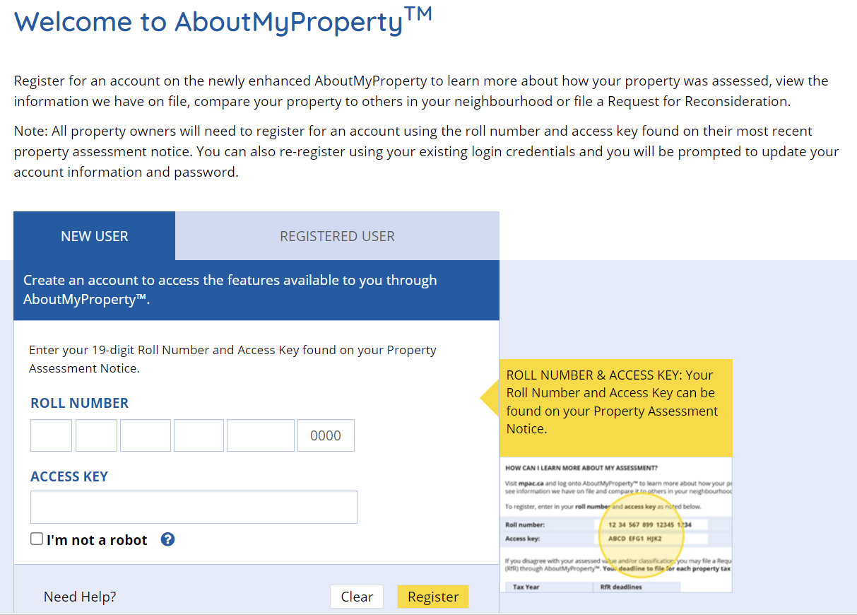 If you need help retrieving this info. Please can contact your municipality’s tax department or click the “Need help” link on the log in page where they can live chat, email or phone MPAC for assistance.