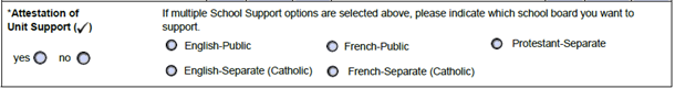 Important Note: The School Assessment Lease form is no longer a requirement of MPAC and has been replaced with an Attestation of Unit Support that is located on the bottom of the Application for Direction of School Support Form. See example below:
