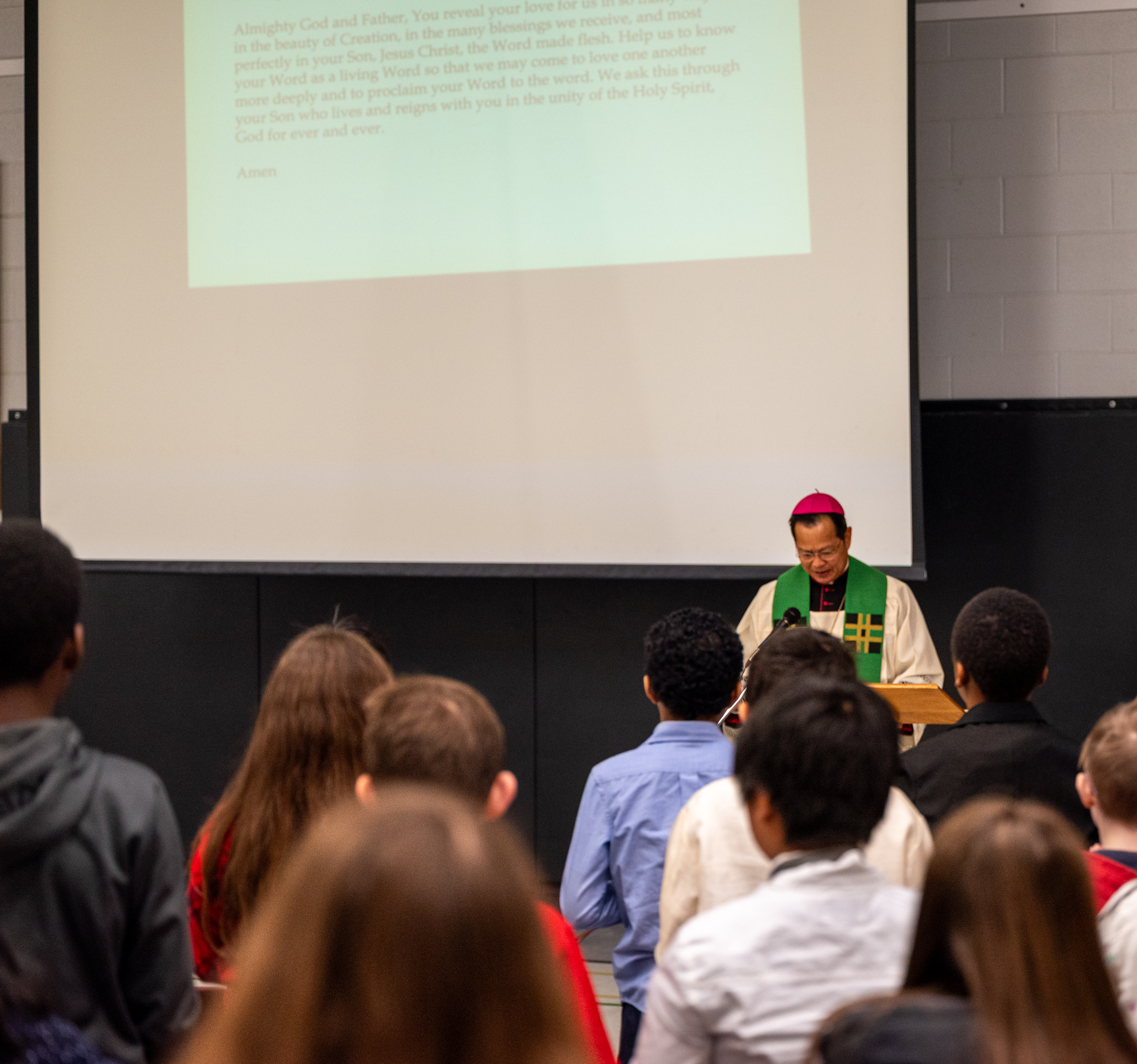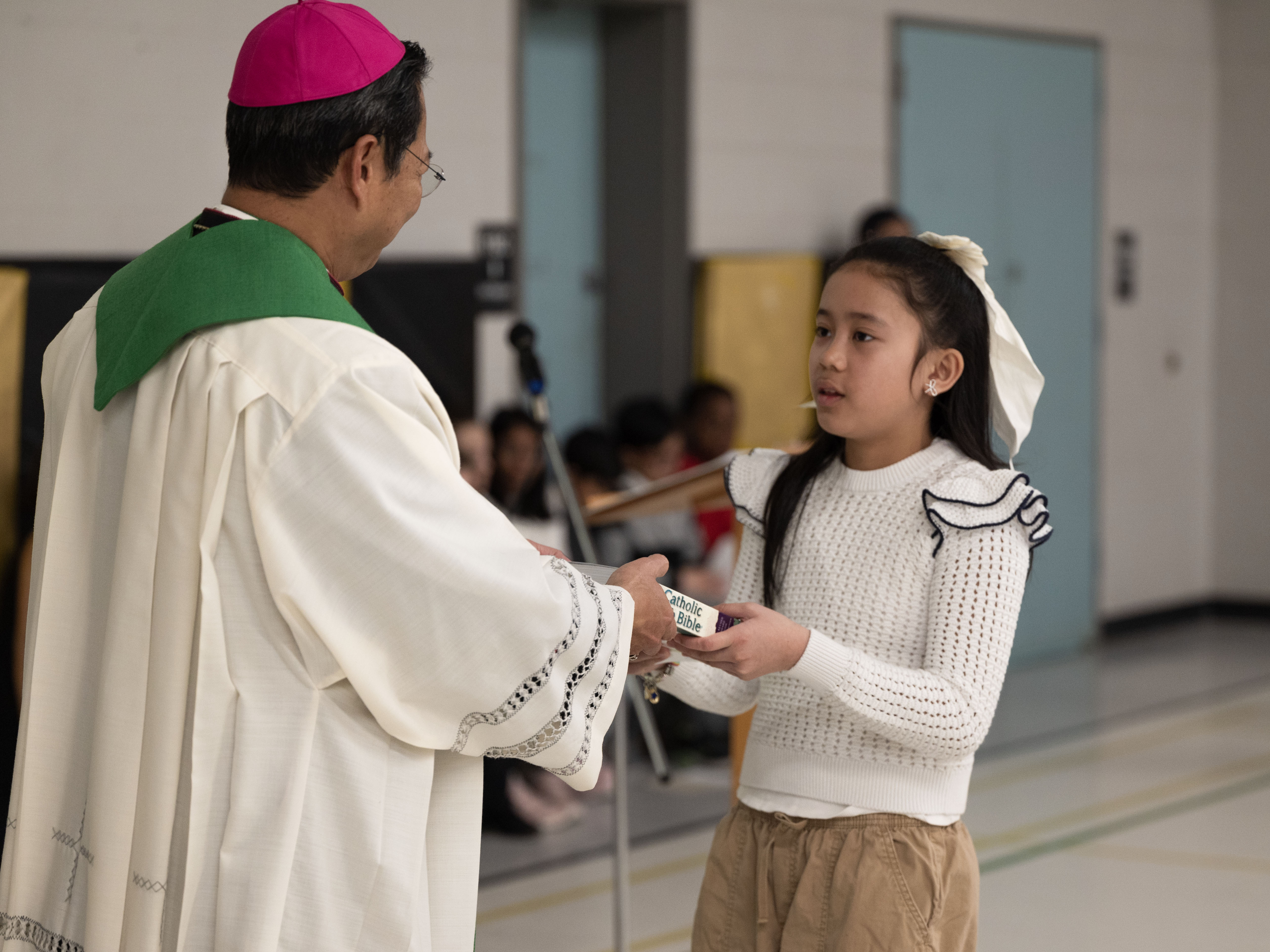 Thank you to Bishop Nguyen and Rev. Marijan Sisko for attending today and for supporting our students during this special faith-filled milestone. We hope these bibles placed in their hands help plant seeds of faith that grow bright and strong as our students continue listening, learning, and living together in faith.