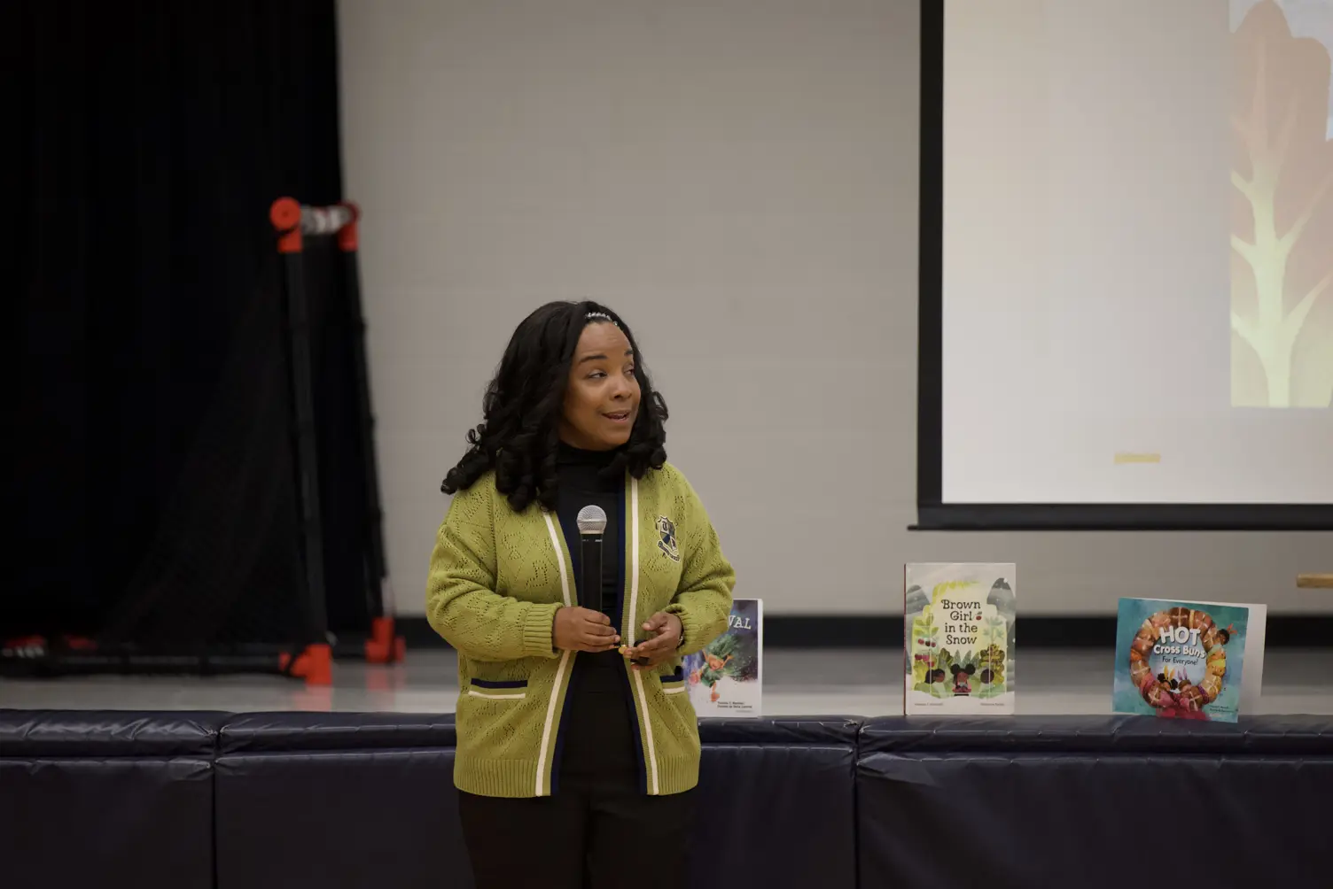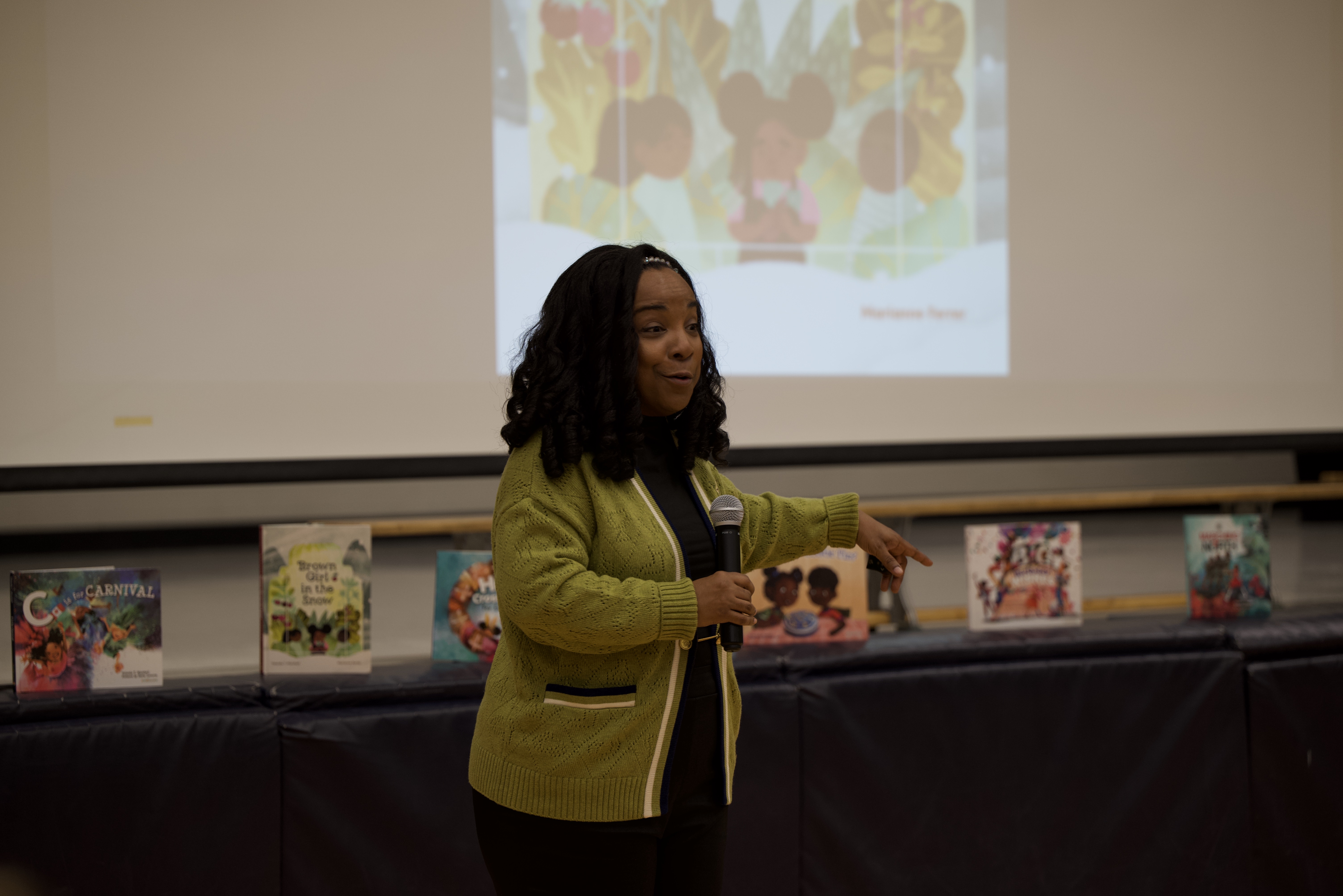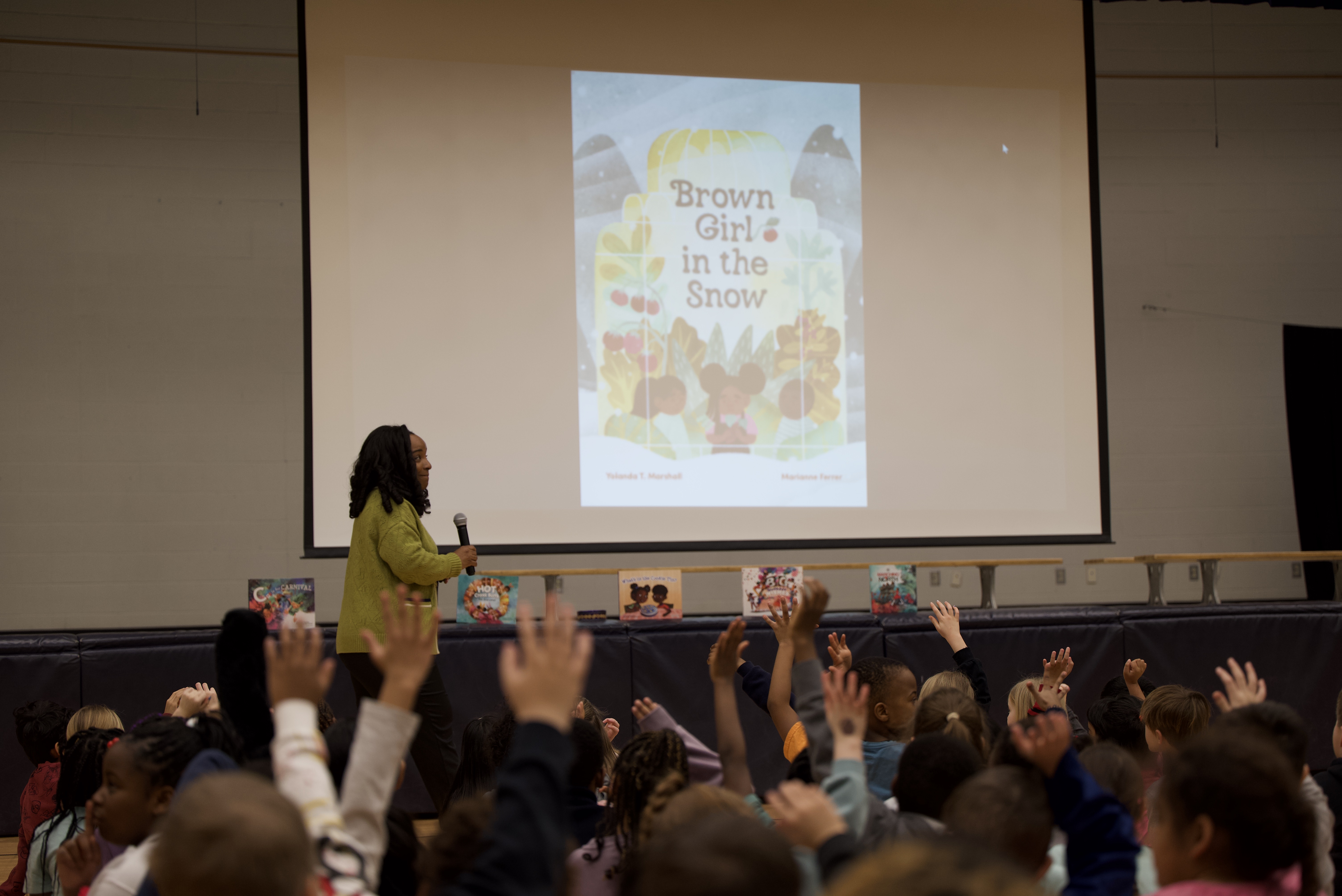 As a culminating activity, Black Canadian author, Yolanda T. Marshall, visited the school on Friday, February 27. Yolanda read her latest book, Brown Girl in the Snow, inspired by a traditional Caribbean children’s song and captures a child’s unwavering persistence and passion, as she grows into her new home in Canada. Yolanda also answered questions about the books they had read and shared information about the publishing process.