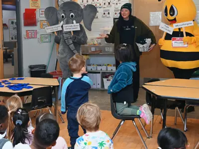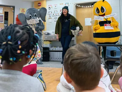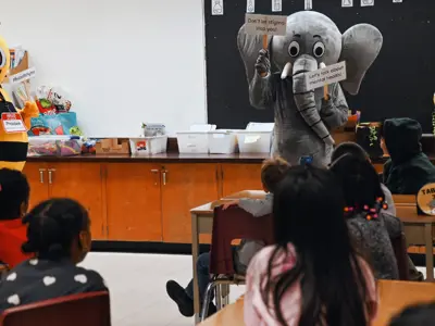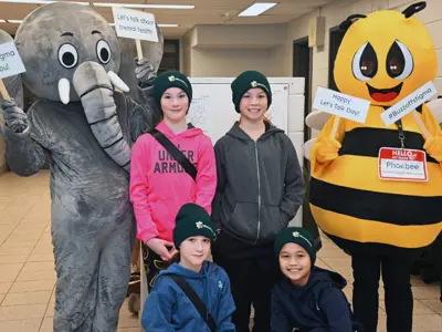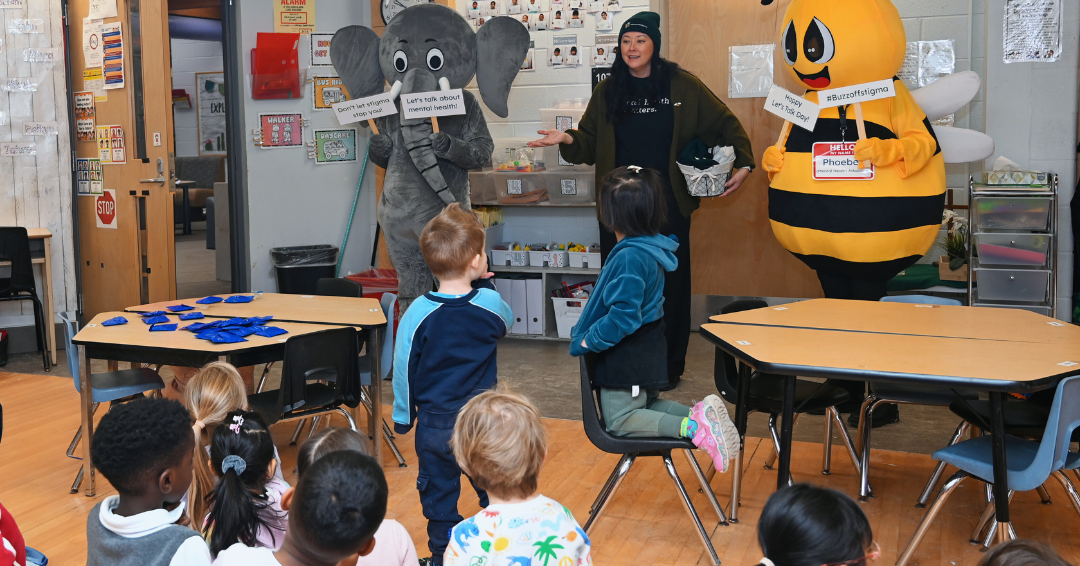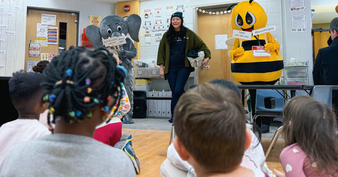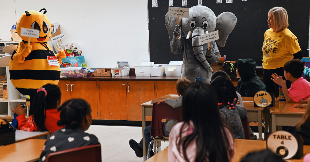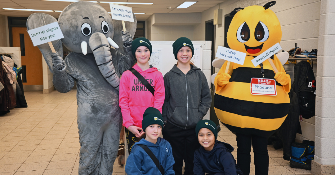 Students at St. Thomas Aquinas Catholic School had two special visitors today for DCDSB Let’s Talk Day! Our DCDSB Mental Health mascot Phoebe the Bee buzzed through the halls with her pal Ellie the Elephant, helping classrooms start meaningful conversations about breaking down the stigma surrounding mental health. Together, they reminded students that it’s always okay to talk, listen, and support one another. #BuzzOffStigma