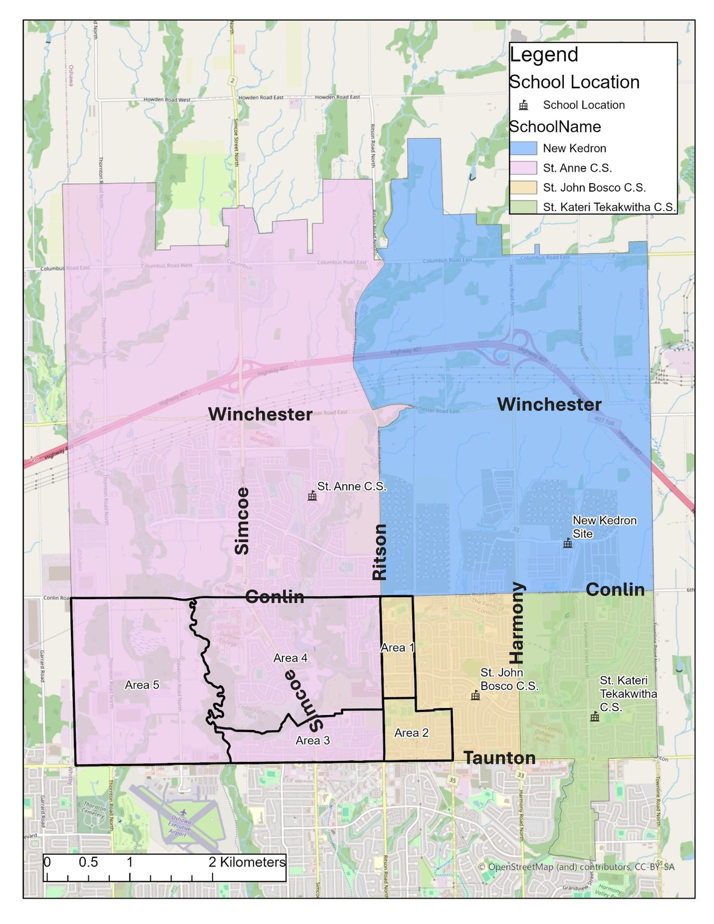 We are writing to share an important update regarding the Oshawa Program and Boundary Study. At the Regular Board Meeting held on June 16, 2025, the Board of Trustees approved the establishment of a new Catholic elementary school boundary in the Kedron area, as well as boundary changes affecting St. John Bosco Catholic School, St. Anne Catholic School and St. Kateri Tekakwitha Catholic School.