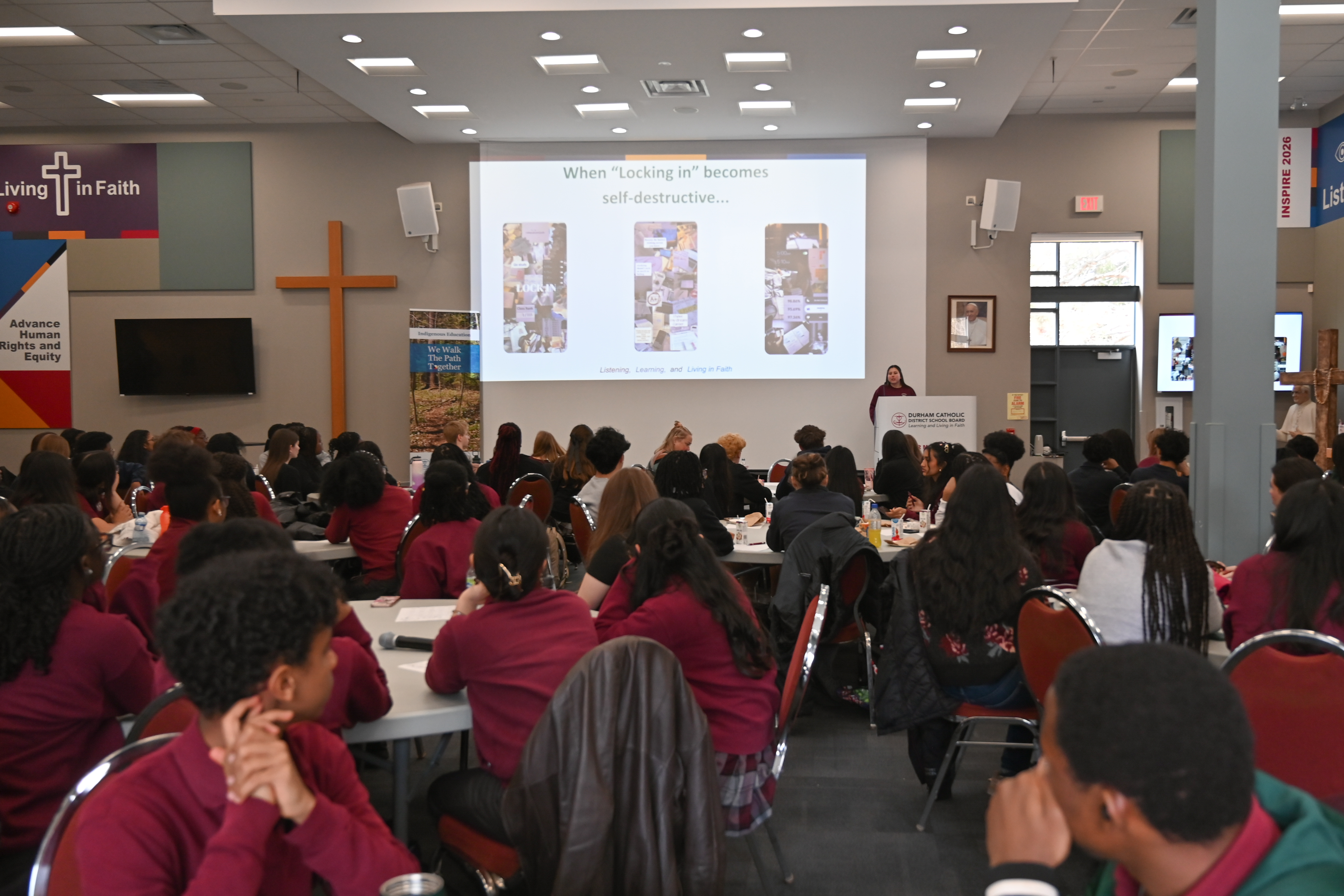 On Thursday, March 24, the Durham Catholic District School Board (DCDSB) Student Senate hosted the 2025 Student Voices Forum at the Pope Francis Centre, welcoming students from Grades 9–11 from across the board for a day focused on student leadership, collaboration, and engagement. The forum provided participants with valuable insight into how student governing structures operate and the important role Student Senate plays in shaping their educational experience.