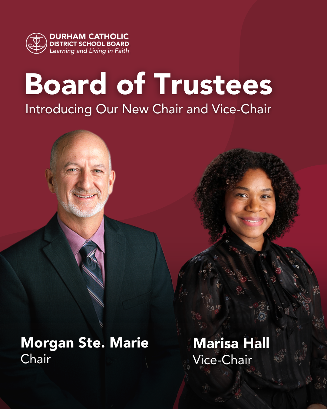The Durham Catholic District School Board (DCDSB) is pleased to announce the results of the election for the positions of Chair and Vice-Chair of the Board of Trustees, held during the Annual Board Meeting on November 24, 2025.