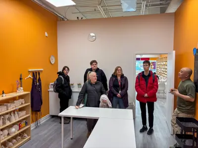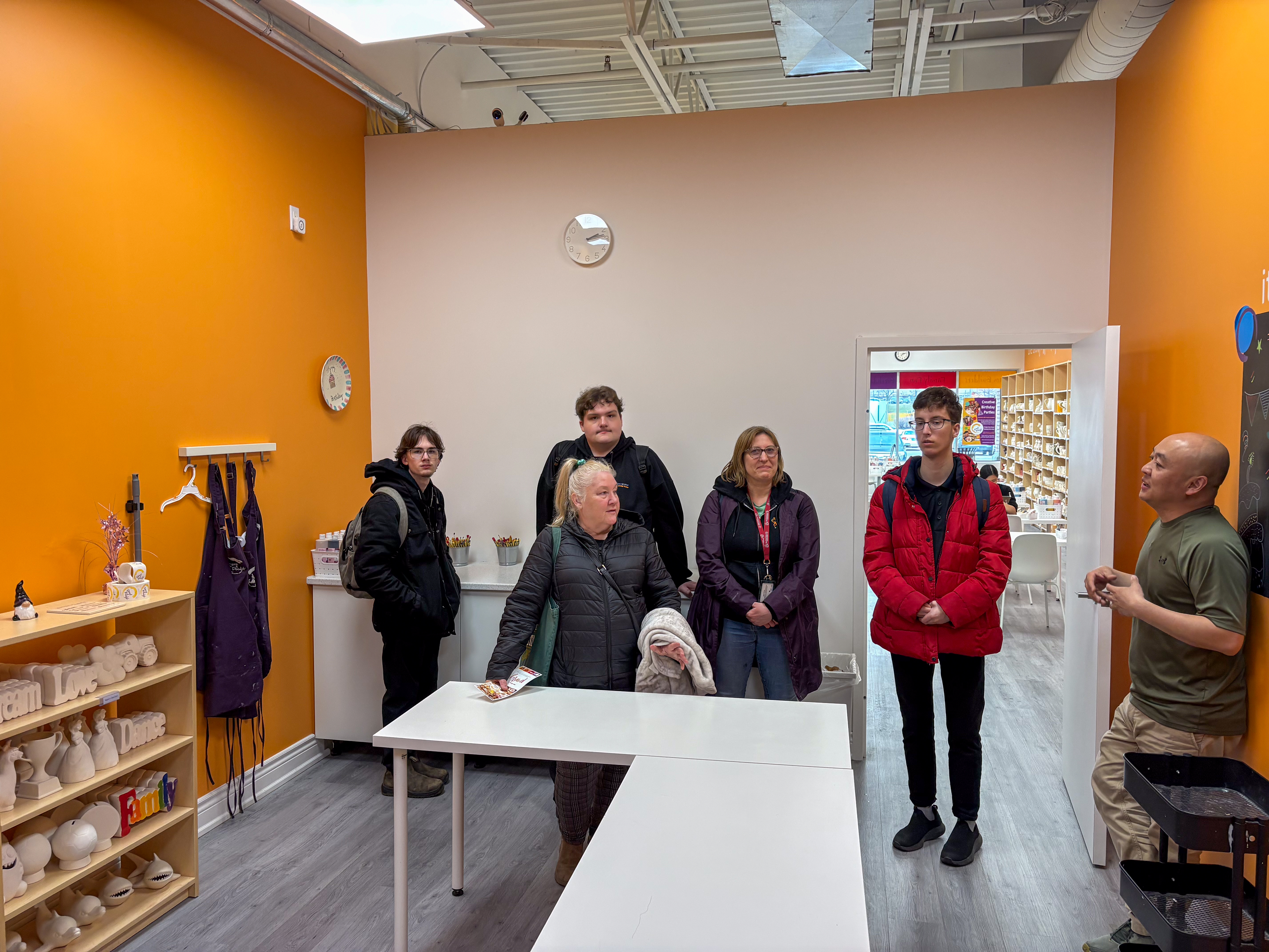 Team members at the Hilton Garden Inn generously shared their knowledge of the hotel and hospitality industry and took them on a tour, while the team at the Durham Convention Centre provided a behind‑the‑scenes look at roles that support events, guest services, and operations. At Crock‑a‑Doodle Ajax, interns enjoyed a tour of the studio and learned how creativity, customer service, and teamwork come together in a welcoming workplace.