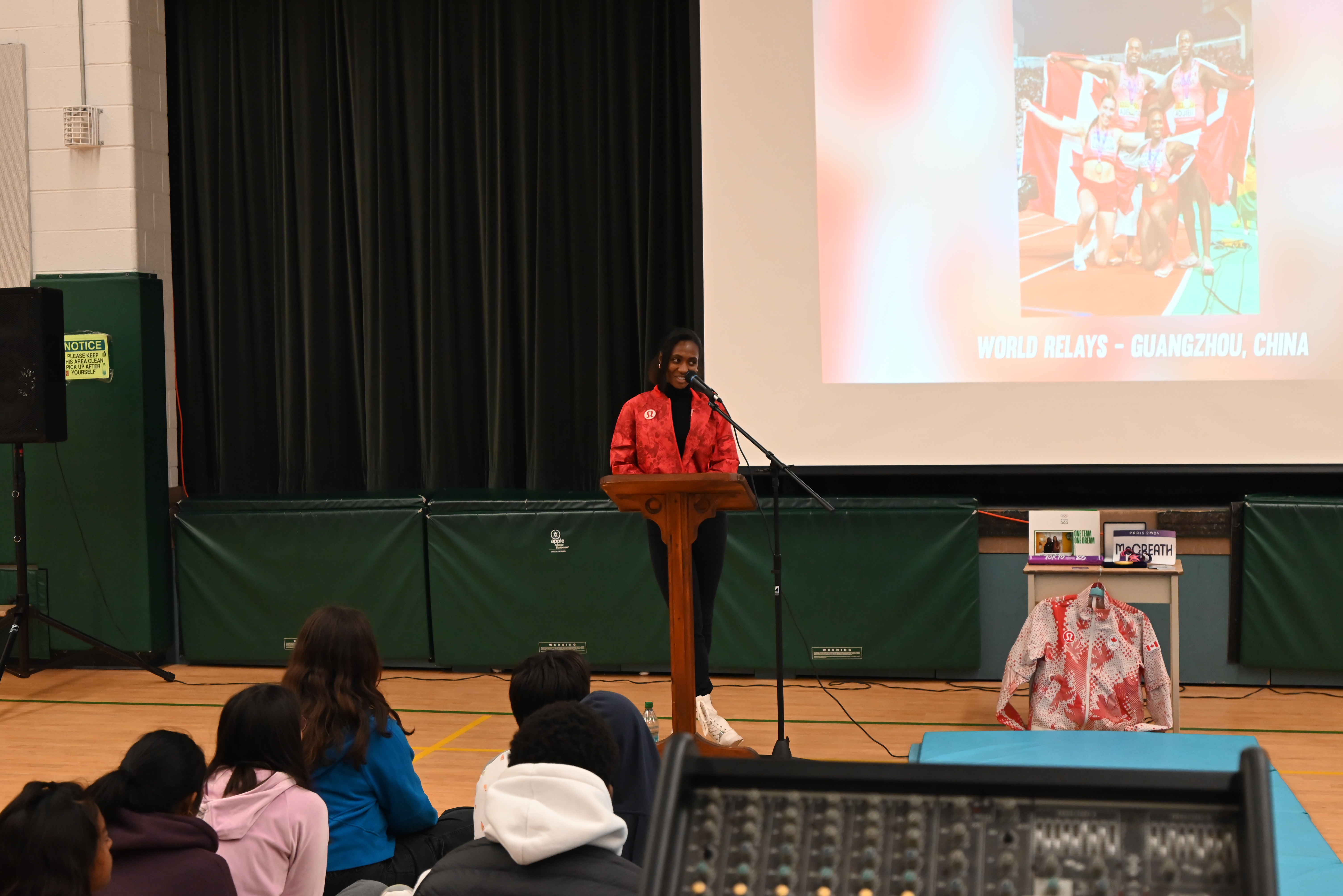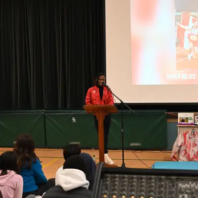 On Friday, November 21, Grade 7 and 8 students at St. Patrick Catholic School had the exciting opportunity to watch a presentation from Canadian Olympian, Sadé McCreath. Sadé competed in the 4 x 100m relay with Team Canada during the 2024 Paris Olympics and received a gold medal in the inaugural mixed 4 x 100m at the 2025 World Athletics Relays in Guangzhou, China.