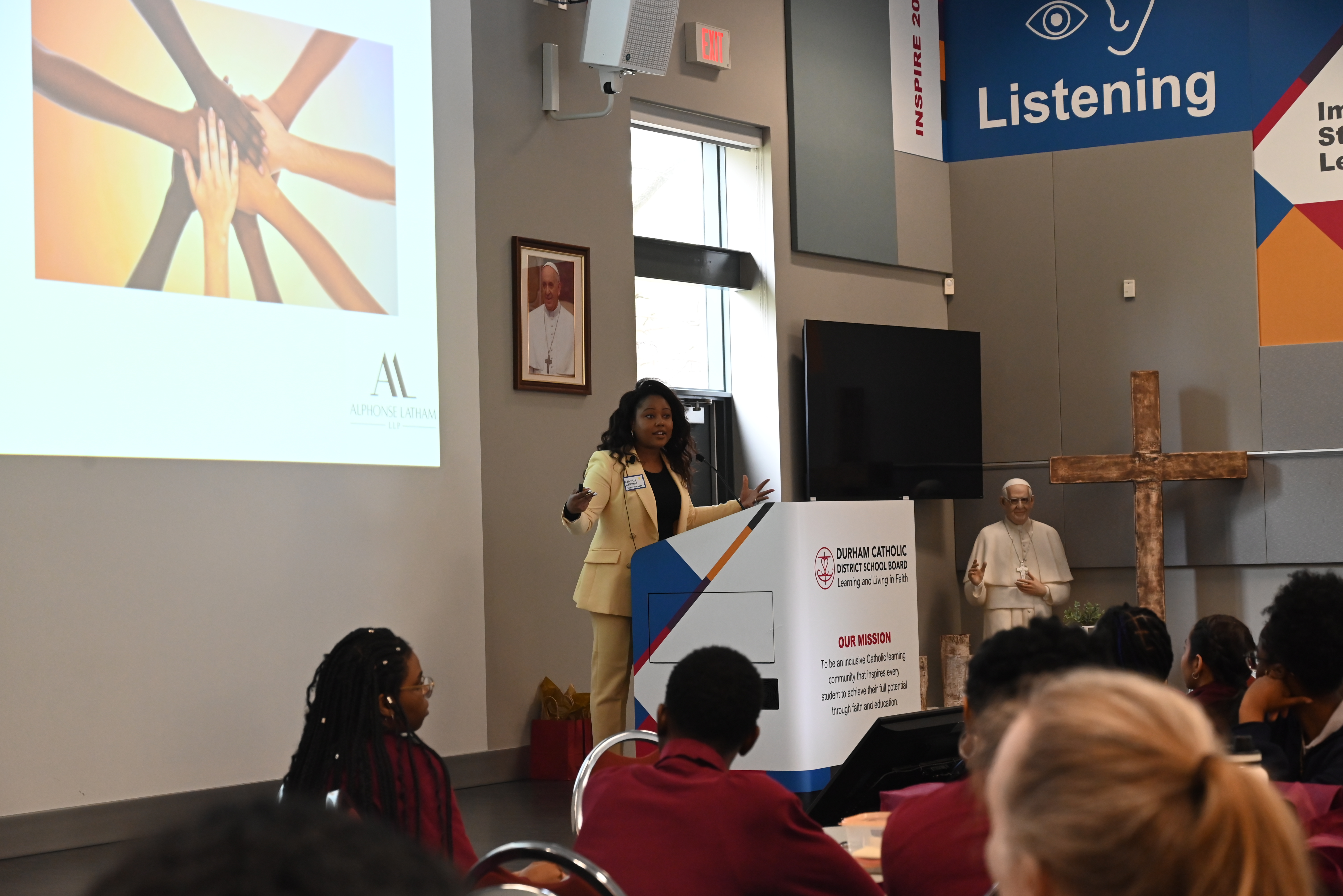 - Lavinia Latham, a Human Rights lawyer, who discussed human rights in education with a focus on racial, disability, gender, and religious rights.