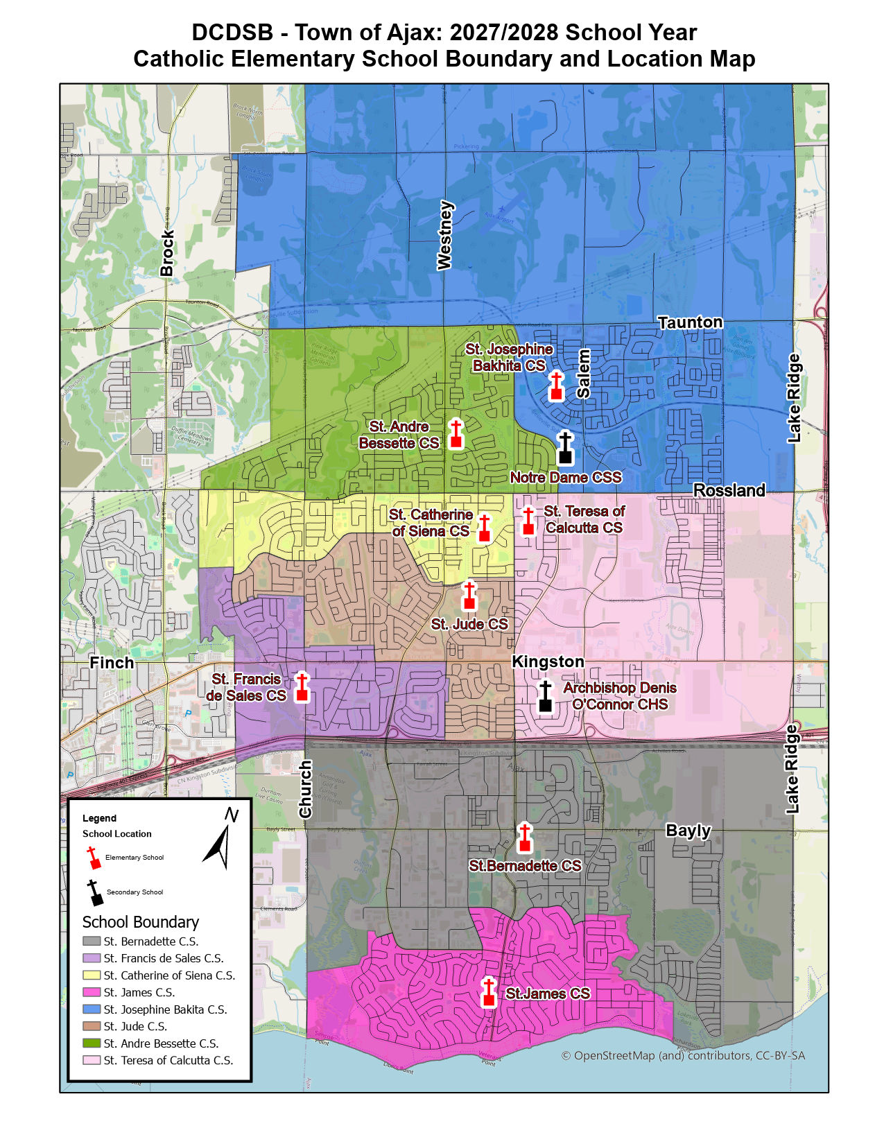 - A boundary change is being implemented to maintain a balanced school population and programming at all three Ajax schools (St. Catherine of Siena, St. André Bessette and St. Jude) that were part of the study.
